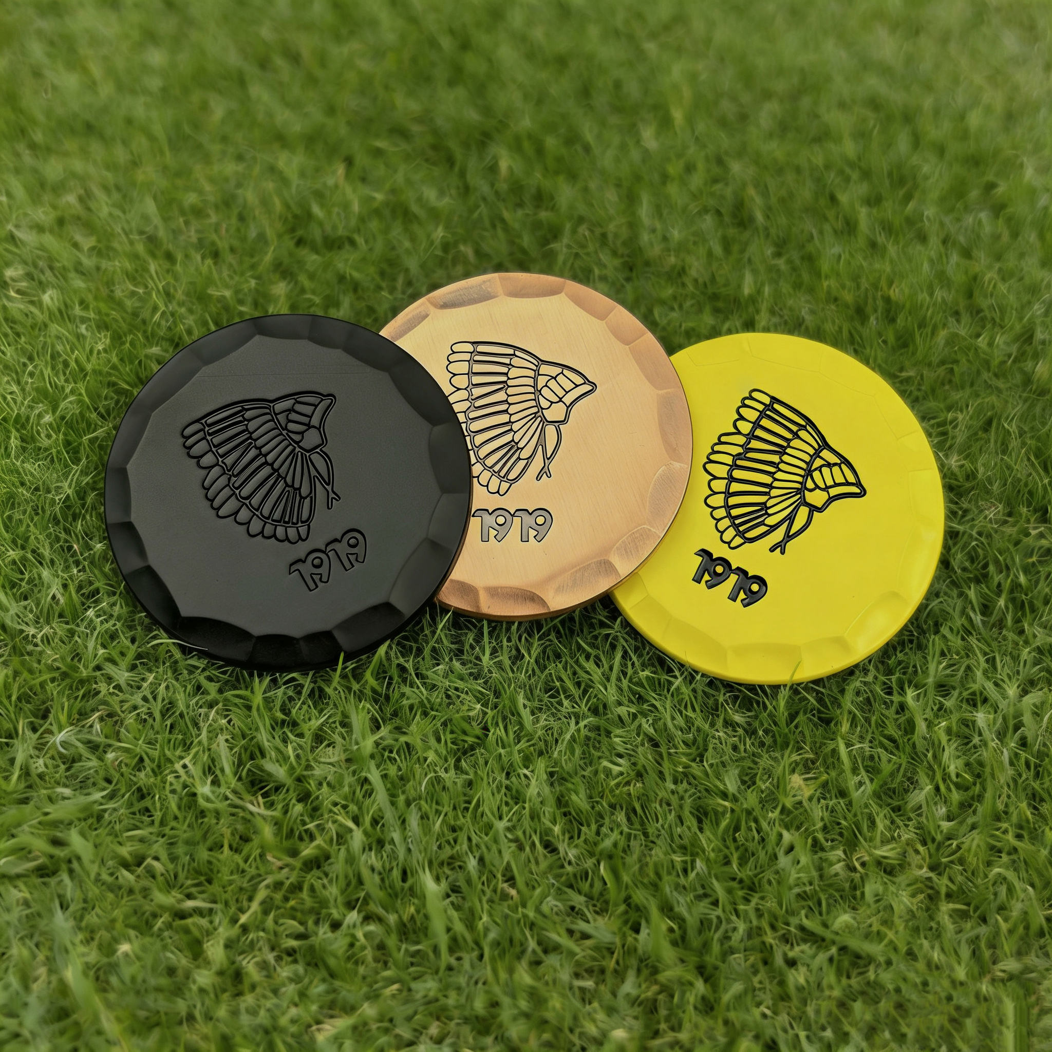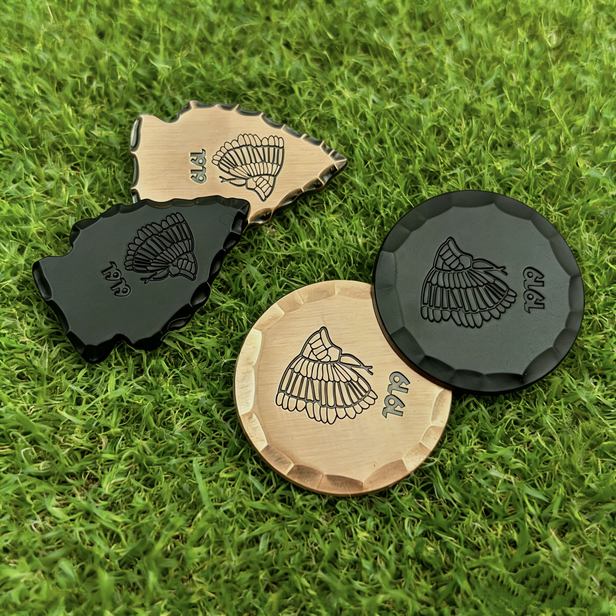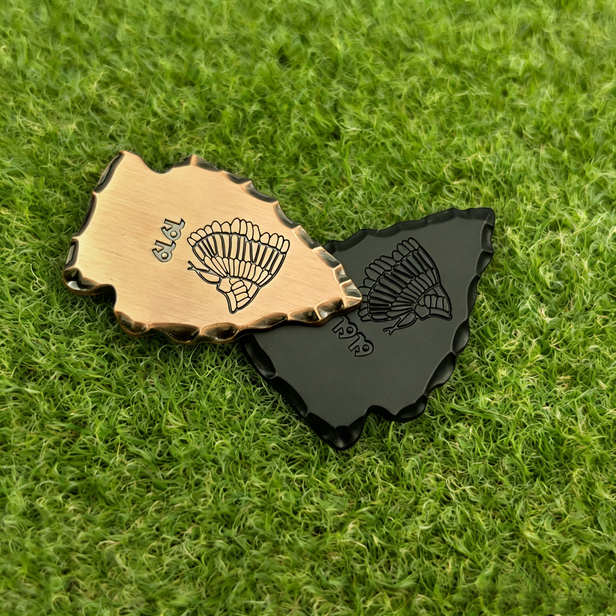 This durable metal ball marker features a distinct shape and a textured edge to help golfers easily mark their ball’s position on the green. Its slim, flat profile ensures it stays out of the way of other players’ putts while remaining highly visible. Built to withstand outdoor conditions, this practical tool is an essential accessory for any golfer during a round.