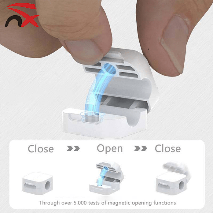 This magnetic cable clip holder keeps your desk tidy by securing charging cords and wires in one place. It uses strong magnets to hold cables firmly, preventing them from sliding off your desk or getting tangled. The compact base attaches easily to flat surfaces, making it a perfect tool for organizing your workspace or nightstand.