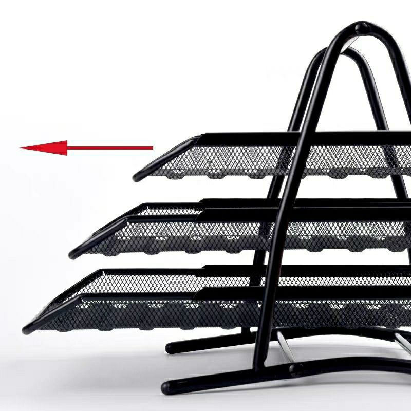 This metal mesh file tray features a spacious top section and a built-in drawer to keep your documents and small office supplies neatly organized. The sturdy mesh construction allows you to easily see your stored files while maintaining excellent airflow to prevent dust buildup. It is designed to sit perfectly on any desk, helping you save space and keep your workspace clutter-free.