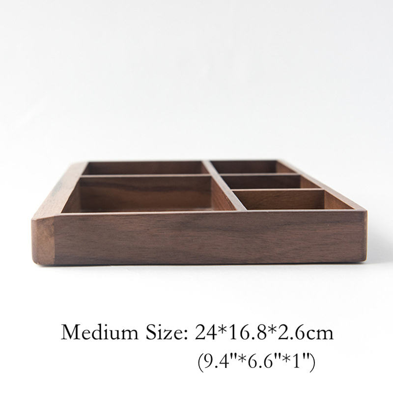 This solid walnut tray helps you keep your desk or dresser organized by holding jewelry, makeup, or office supplies. The natural wood construction is durable and provides a smooth surface to protect your small items from getting lost. It is a practical solution for keeping your workspace tidy and your daily essentials within easy reach.