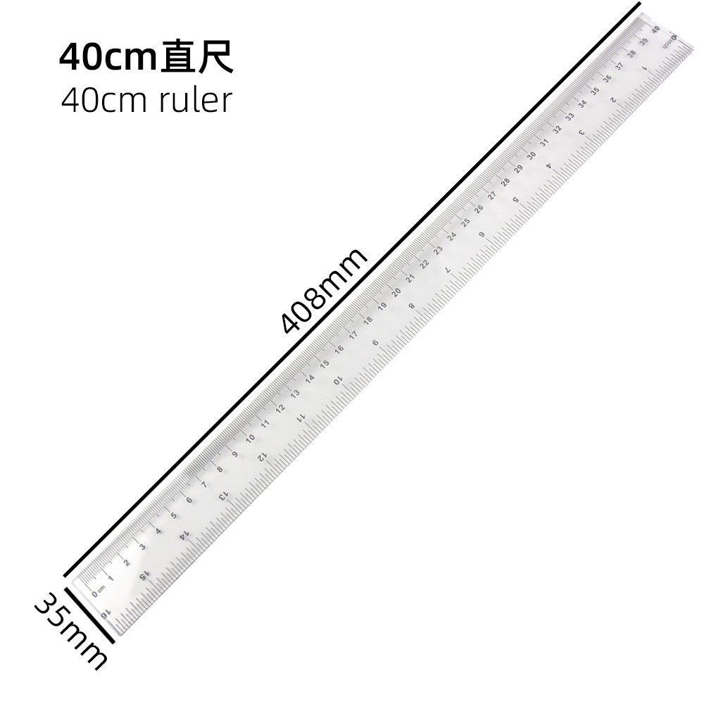 This 40cm straight ruler features two different scales for precise measuring and drawing on larger documents. It is made from hardened plastic, making it durable enough for daily use in offices, schools, and construction sites. The transparent design allows you to see the paper underneath, ensuring accurate alignment for every task.