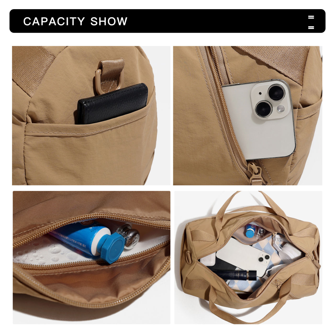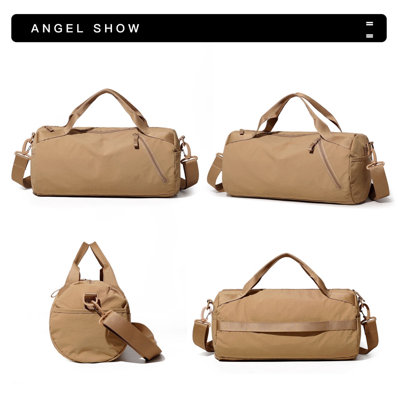 This waterproof nylon travel bag features a large capacity and a specialized compartment to keep wet and dry items separate. It is made from durable, water-resistant fabric that protects your belongings from spills and weather. This versatile bag is perfect for the gym, weekend trips, or swimming, providing plenty of space to organize your essentials.