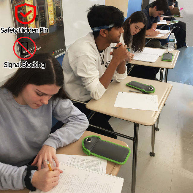 This neoprene mobile phone pouch features a secure magnetic lock to keep your device safely tucked away. It is designed to help students and professionals stay focused by storing phones during classes or important meetings. The soft, flexible material protects your phone from scratches while the lock ensures it remains inside until needed.