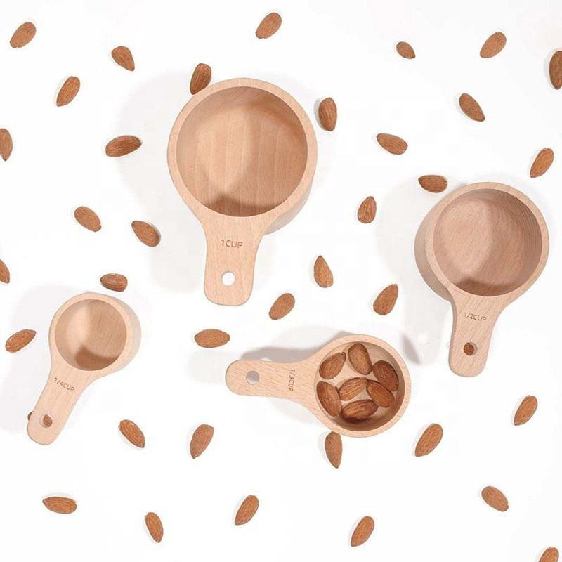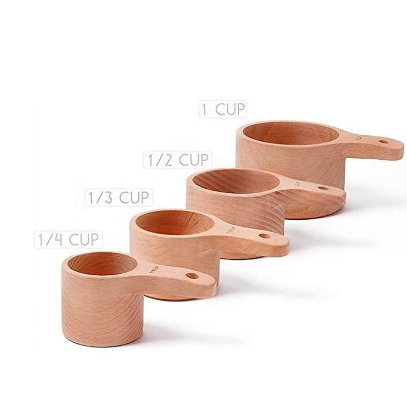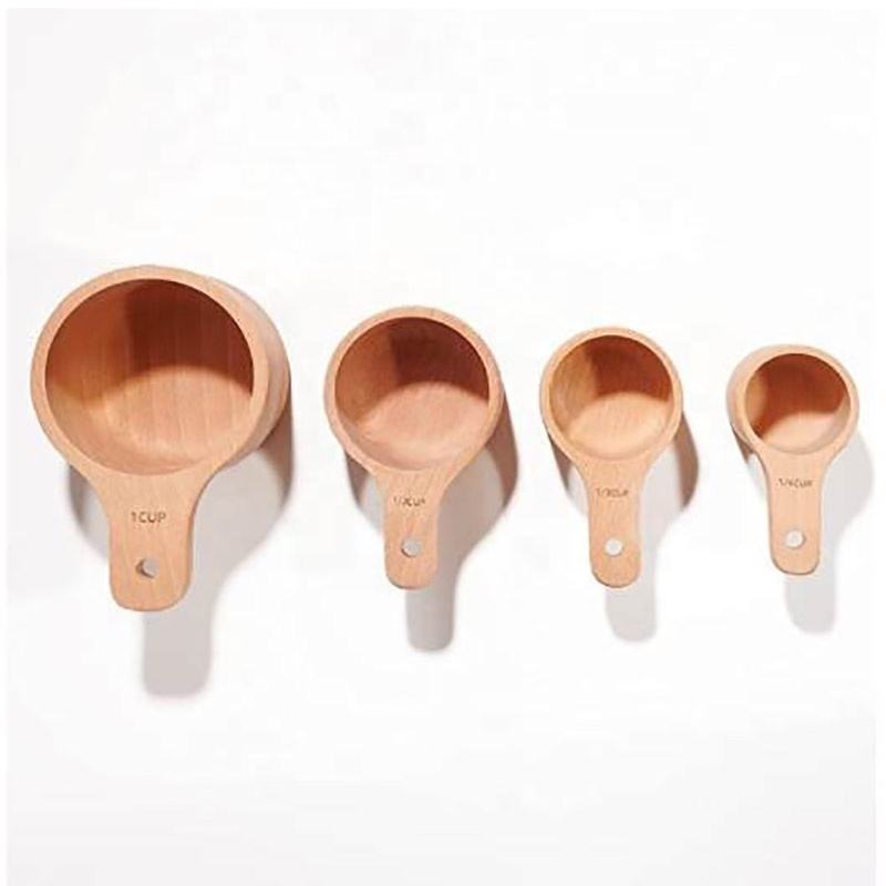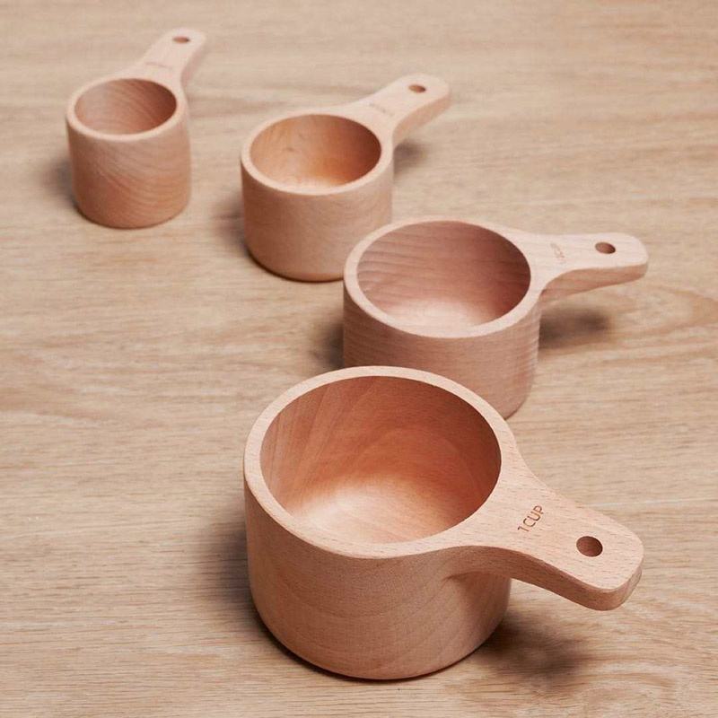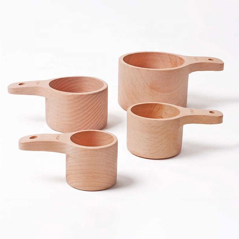 This handcrafted wooden measuring set includes four different sizes for accurately measuring dry ingredients like flour, sugar, and spices. Each piece features a smooth polished finish that makes them easy to handle and clean after use. The sturdy wood construction is designed for daily kitchen tasks, providing a natural and reliable alternative to plastic tools.