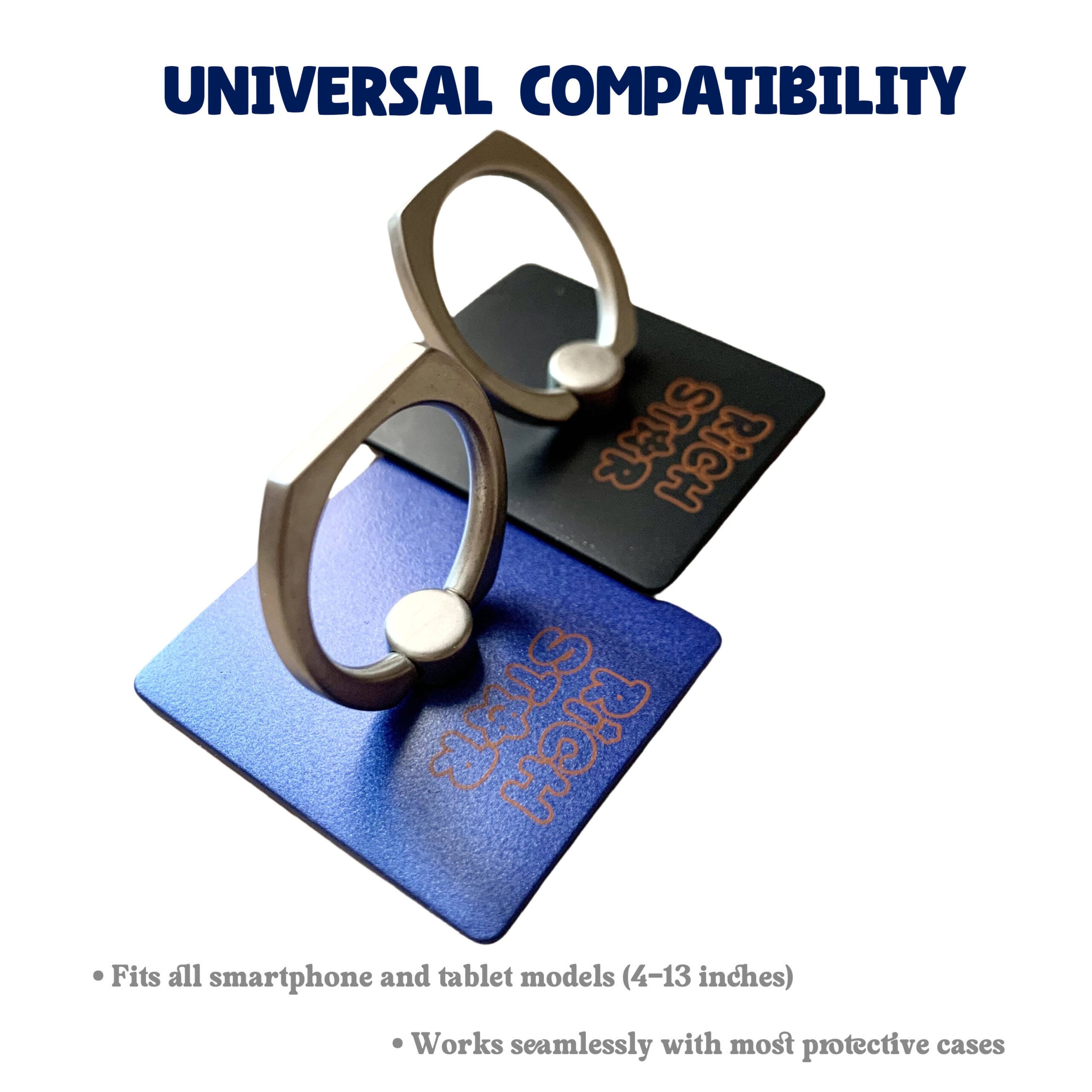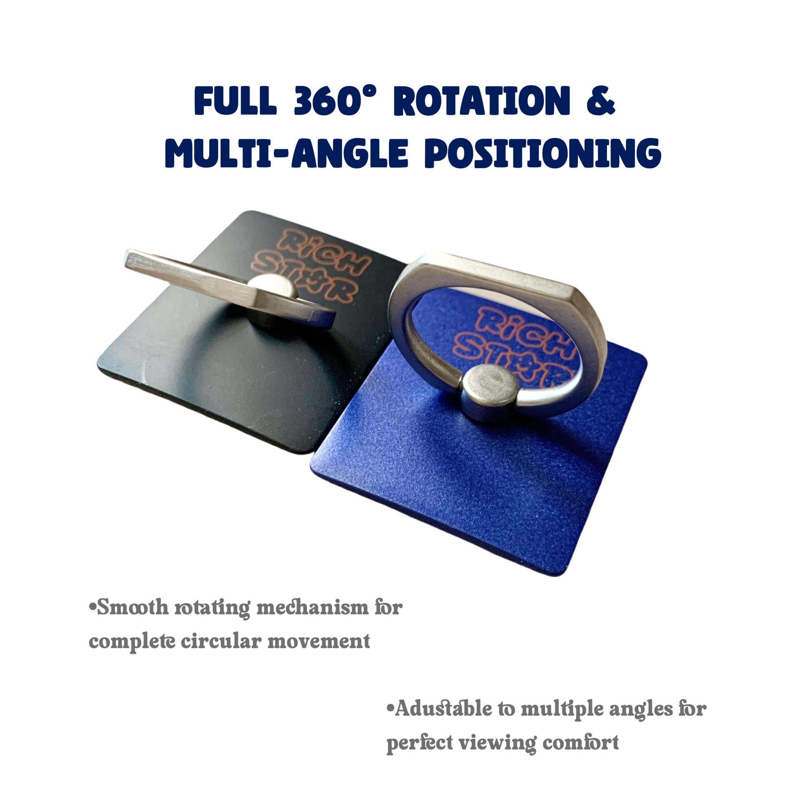 This ring phone holder attaches securely to the back of your device to provide a steady grip and prevent accidental drops. It rotates 360 degrees, allowing you to use it as a kickstand for watching videos hands-free in both portrait and landscape modes. The slim design keeps your phone pocket-friendly while offering a practical way to hold your device with one hand.