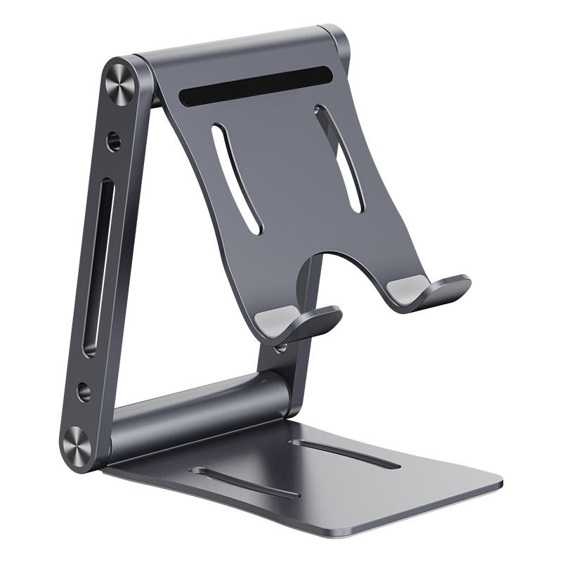 This foldable mobile phone stand is made from strong aluminum alloy, providing a steady and secure base for your device on any flat surface. Its portable design allows you to fold it flat for easy storage in a pocket or bag while traveling. You can easily adjust the height and angle to stay comfortable while watching videos, reading, or making video calls.