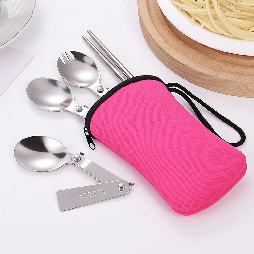 This reusable silverware set is made from durable stainless steel and includes chopsticks, a spork, and a spoon. It comes with a compact storage bag, making it easy to carry in a backpack or lunch box for work, travel, or camping. The sturdy, rust-resistant pieces are easy to clean and provide a practical, long-lasting solution for eating on the go.