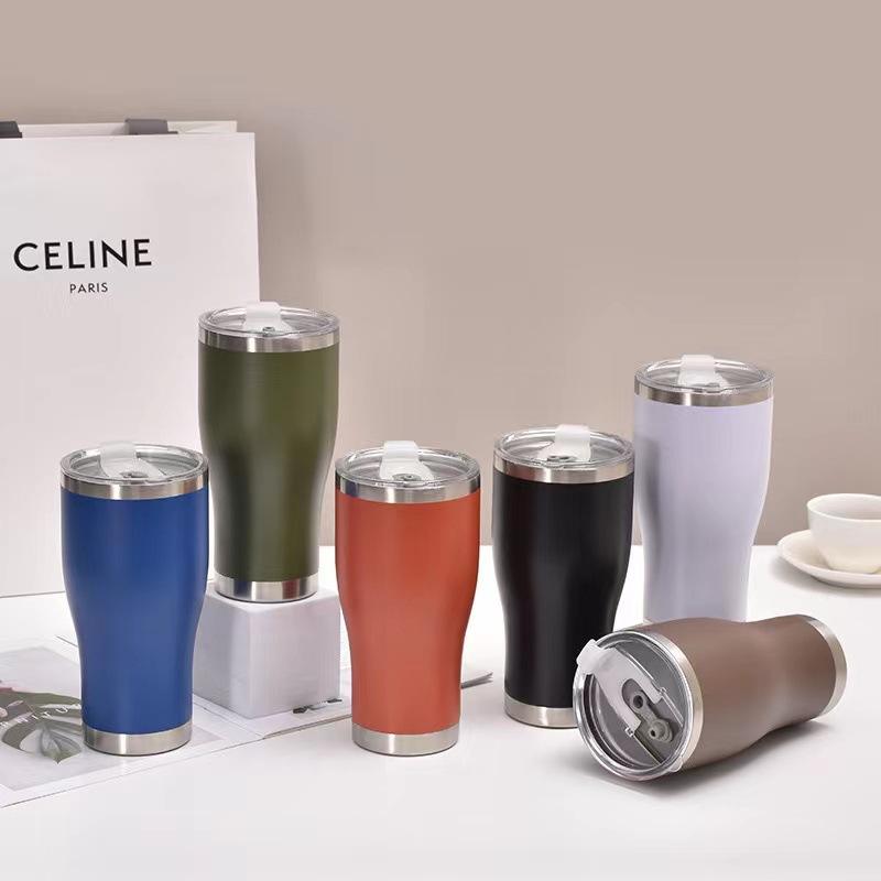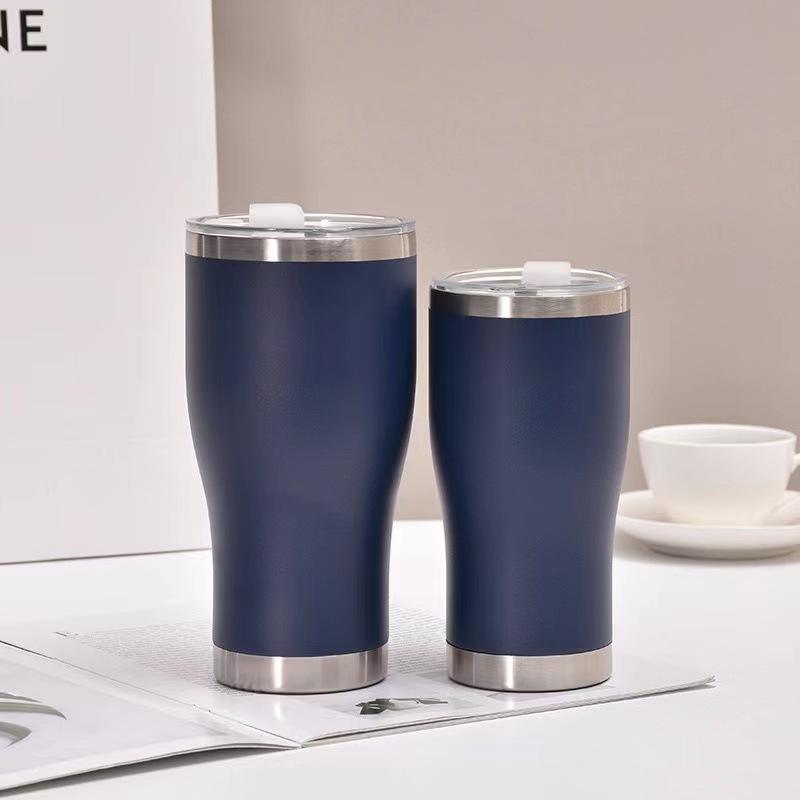 This 20-ounce travel mug is made of double-walled stainless steel to keep your coffee hot or cold for several hours. The vacuum-insulated design prevents condensation on the outside and features a curved shape for a comfortable, steady grip. It is built to fit most cup holders, making it a reliable choice for your daily commute or office use.