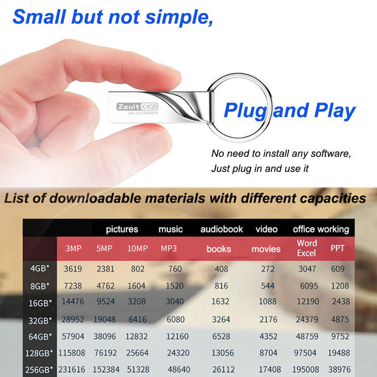 This metal USB flash drive provides a secure and reliable way to store and transfer your digital files, photos, and documents. Its compact, durable design protects your data and makes it easy to carry on a keychain or in a small pocket. The plug-and-play feature works instantly with computers and laptops for quick access to your important information.