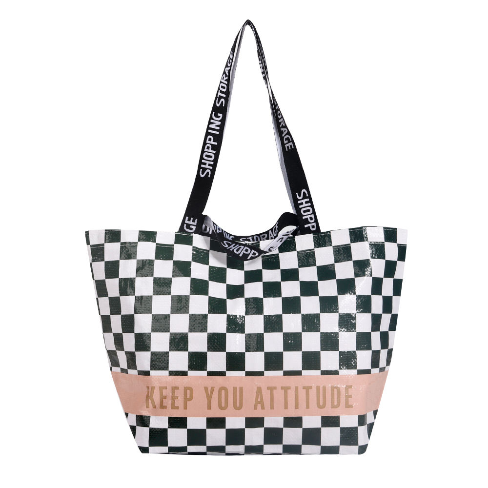 This durable tote bag is made from water-resistant material and features a large interior for carrying heavy groceries or daily essentials. The strong shoulder straps make it comfortable to carry, even when the bag is fully loaded. It is a reusable and eco-friendly choice for shopping, travel, or moving items securely.